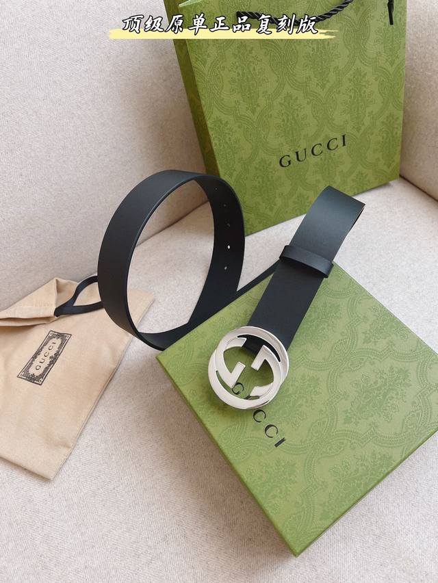 / 广州工厂直发guc古奇黑色平纹小牛皮腰带,饰有互扣式双g带扣细节。风格简而不失其华;适合各种穿搭风格。皮带宽度:4.0Cm