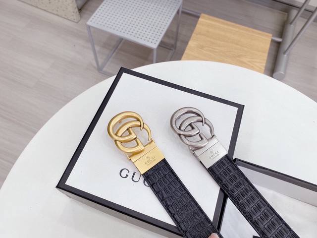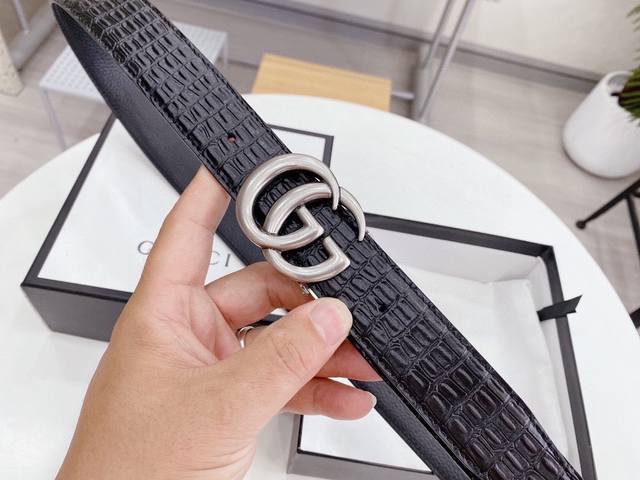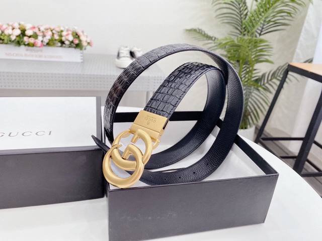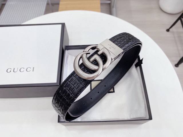 配送专柜全套礼盒包装。Gucci 经典全皮压花,原版进口皮底,精品双g钢扣 宽度40Mm