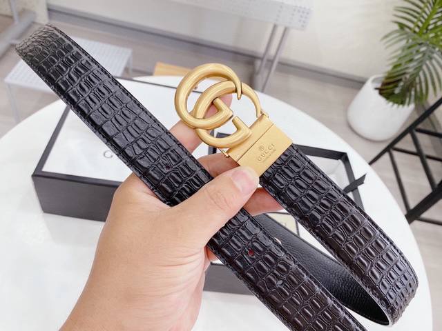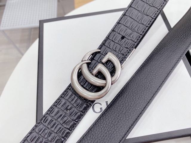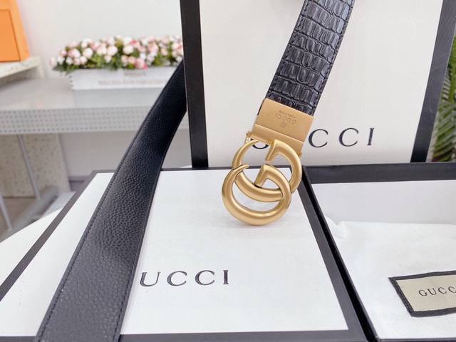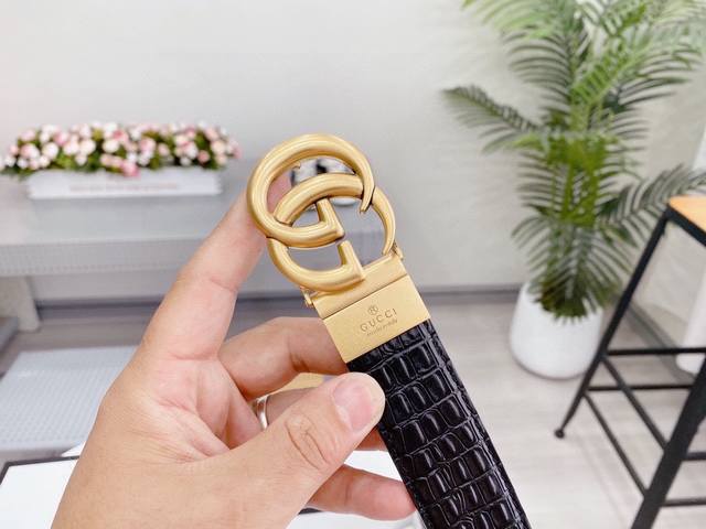 Gucci 古奇官网经典款 正品规格 原单品质 专柜小牛皮压花 头层进口变色磨砂3.8Cm。