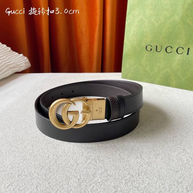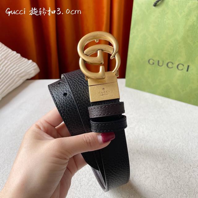 / Gucci 新品 双面进口原厂小牛皮 搭配可旋转精品铜扣 双面可用 可裁剪 带宽3.0Cm