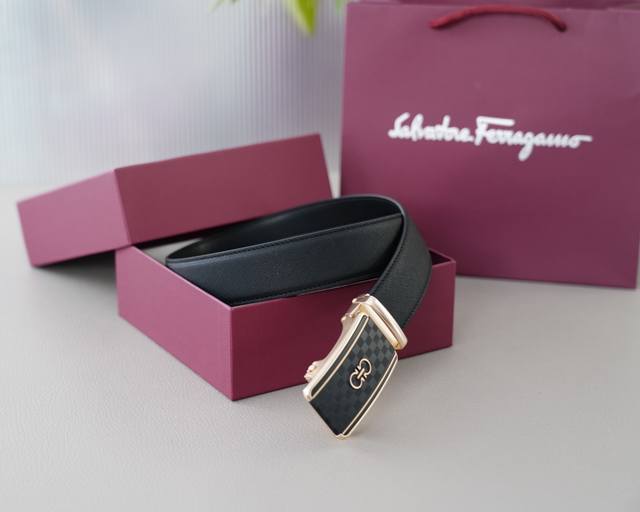 菲拉格慕 Salvatore Ferragamo 意大利 宽度3.5Cm 精美扣头 不褪色 小牛皮 手感极佳 上身郊果棒 商务休闲两用