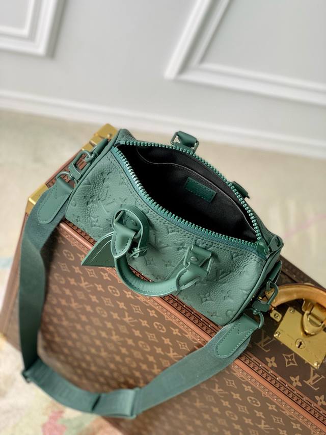 经典 Keepall 旅行袋于2024年以柔软monogram 压纹 Taurillon 皮革裁出紧凑构型,经由深染工艺呈现素雅色调,道出户外美景的灵感启发。