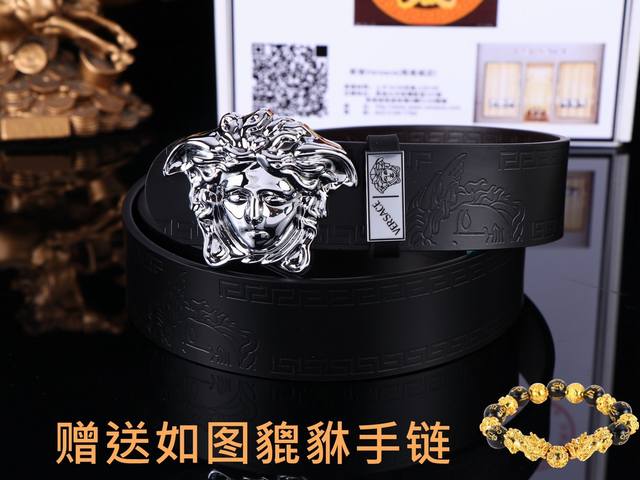 配全套包装 品牌:Versace海外原单 扣头材质:100%双色纯钢扣...