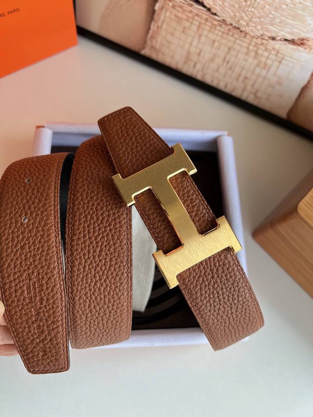 Hermes爱马仕 男士双面皮腰带38Mm采用专柜最新底皮皮质,搭配h金色 银色金属焊点扣。