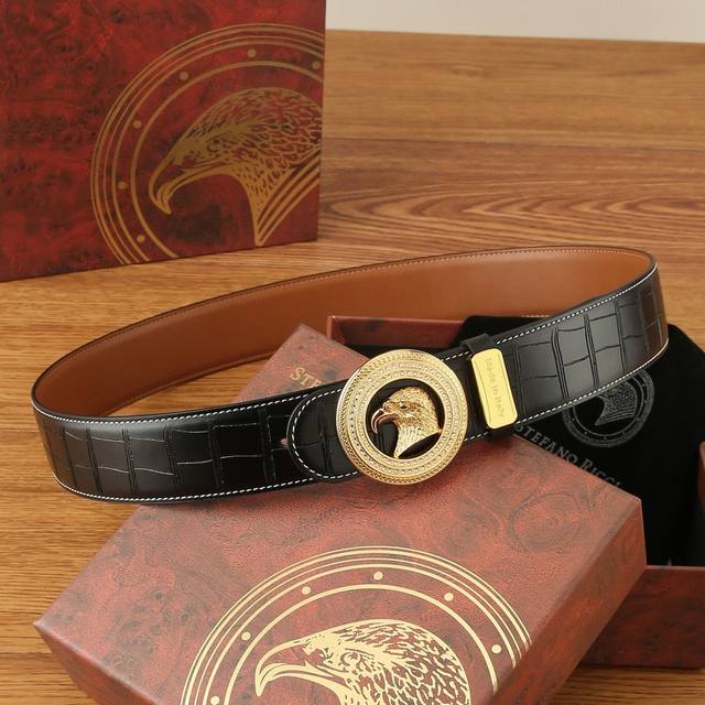 工厂直发-史蒂芬-男士腰带 全套包装 宽度 38Mm宽度 精品五金挂扣 真空电镀原厂皮料 双面原厂定制进口面料