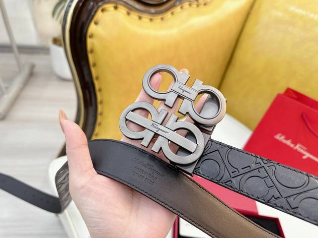 菲拉格慕 皮带 原单双面进口小牛皮带身.黑色与咖啡色一体,正反两面可用,搭配原单精品钢扣。原产皮料定制,专柜宽度3.5Cm....