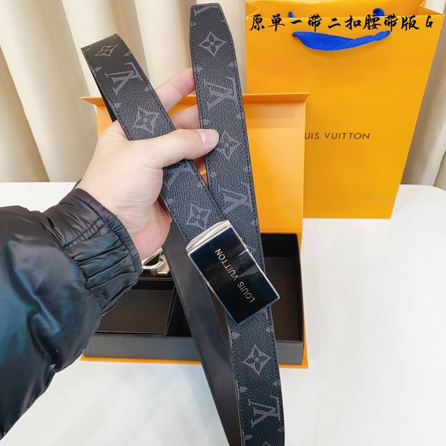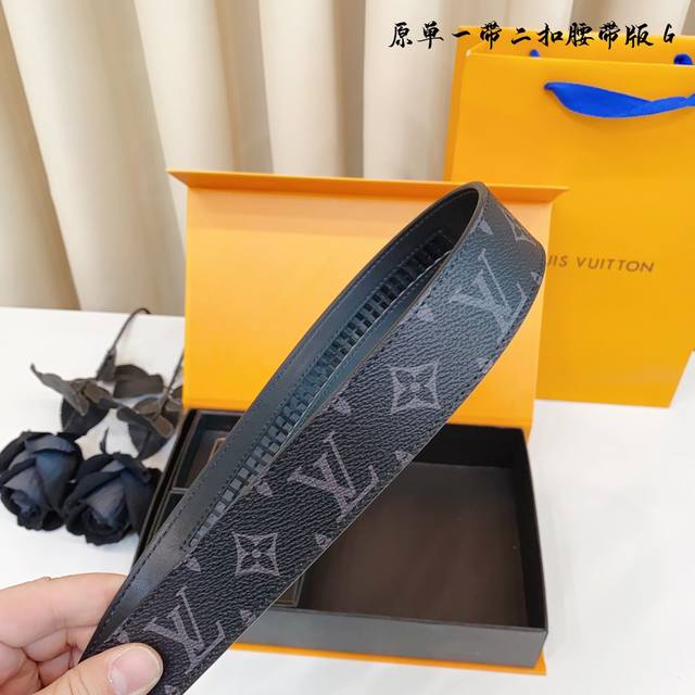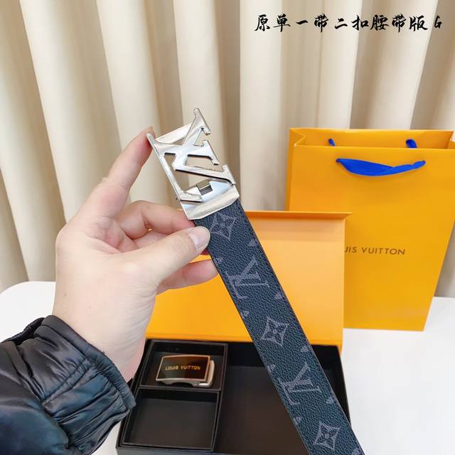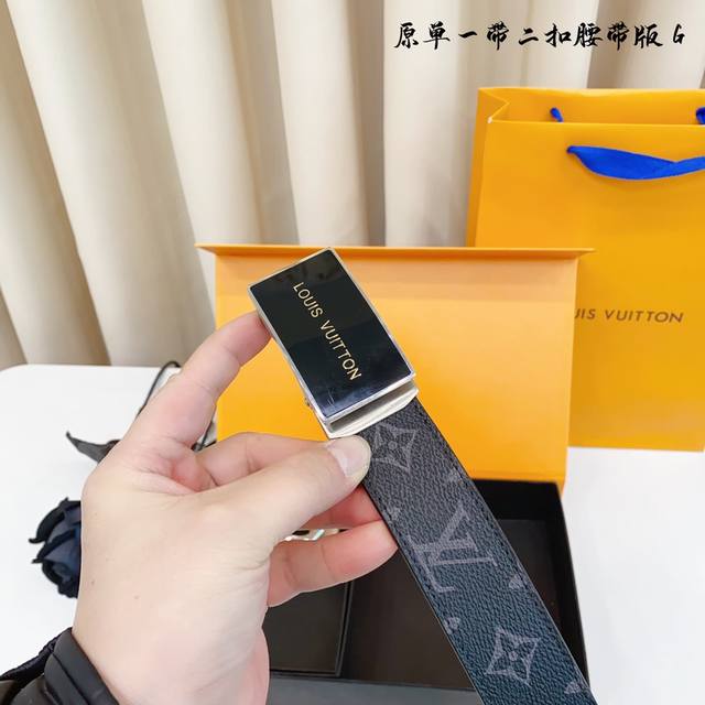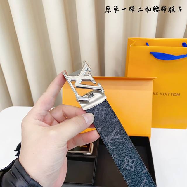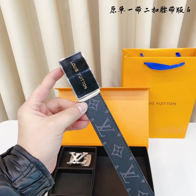 ①带①扣 ①带②扣 原单钢扣版路易l家 滑道 正版开模 此款腰带双面采用原厂牛皮带身,精密电镀标志性纯钢搭扣 对版专柜。3.5Cm 如需木盒40