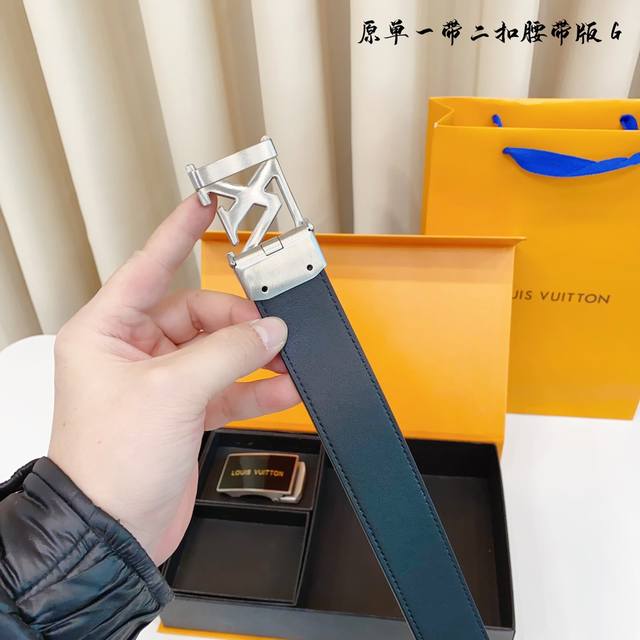 / ①带①扣 ①带②扣 原单钢扣版路易l家 滑道 正版开模 此款腰带双面采用原厂牛皮带身,精密电镀标志性纯钢搭扣 对版专柜。3.5Cm 如需木盒40