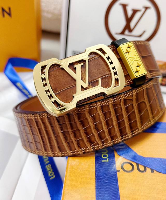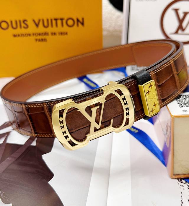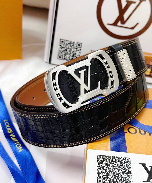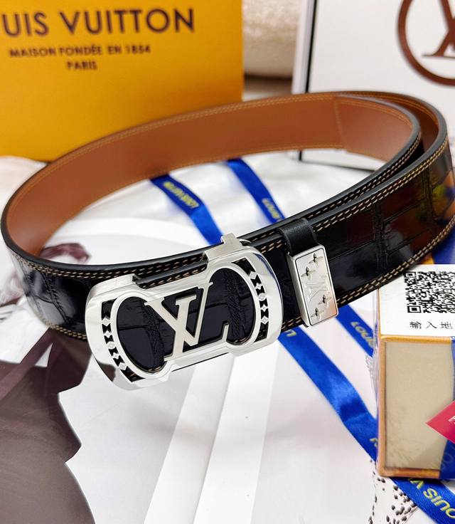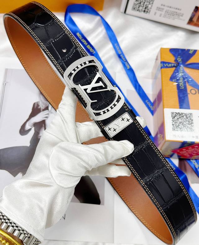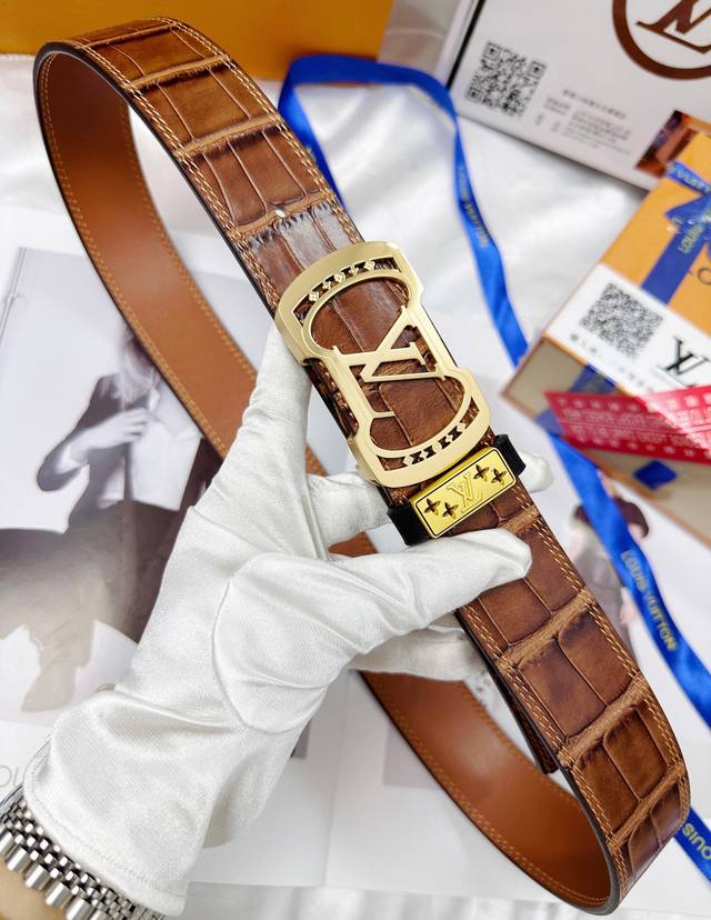 皮带:Lv..路易..威登顶级原单复刻. 腰带:百分百头层牛皮,保证真皮。雕花镂空设计24K纯钢扣.永不掉色进口原厂鳄鱼皮纹路.纯手工双线缝制工艺双面两用专柜同