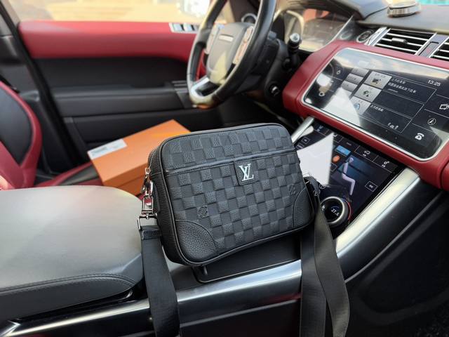 / 高端货 新款 “ Louis Vuitton ”Lv单肩包 路易威登牛皮斜挎包 可调节肩带磁吸扣开合 粒面软皮 头层牛皮 单肩斜挎包 男款 黑色 超高清五金lo