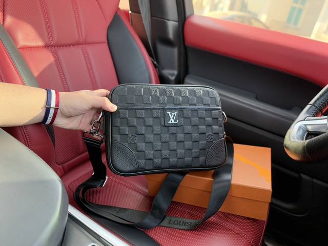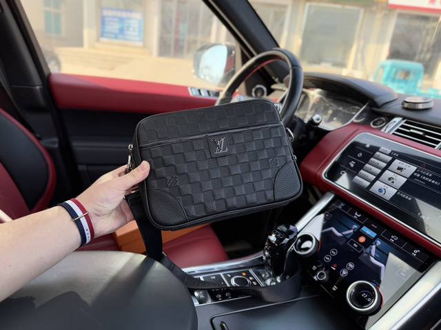 高端货 新款 “ Louis Vuitton ”Lv单肩包 路易威登牛皮斜挎包 可调节肩带磁吸扣开合 粒面软皮 头层牛皮 单肩斜挎包 男款 黑色 超高清五金logo标志、顺滑拉链、油边超平滑、做工精致每个细节到位!男人必备款。规格:26X19X7Cm 配礼盒