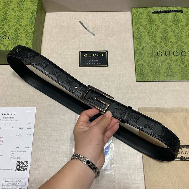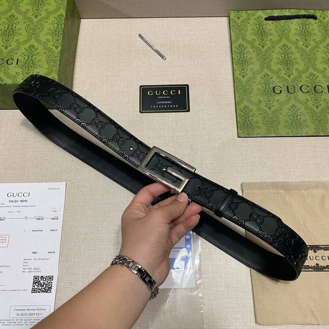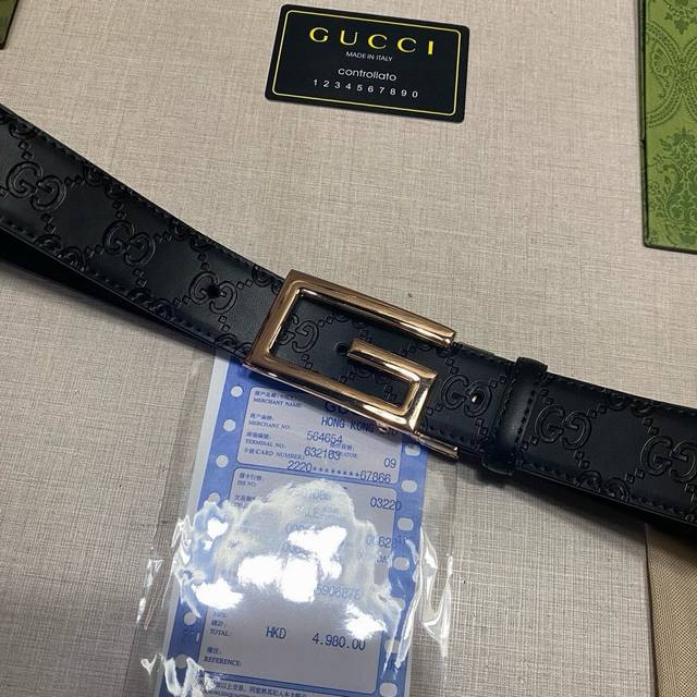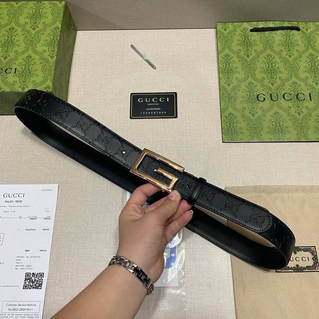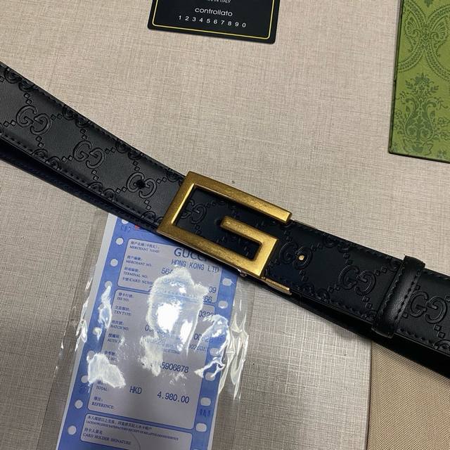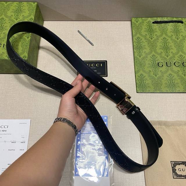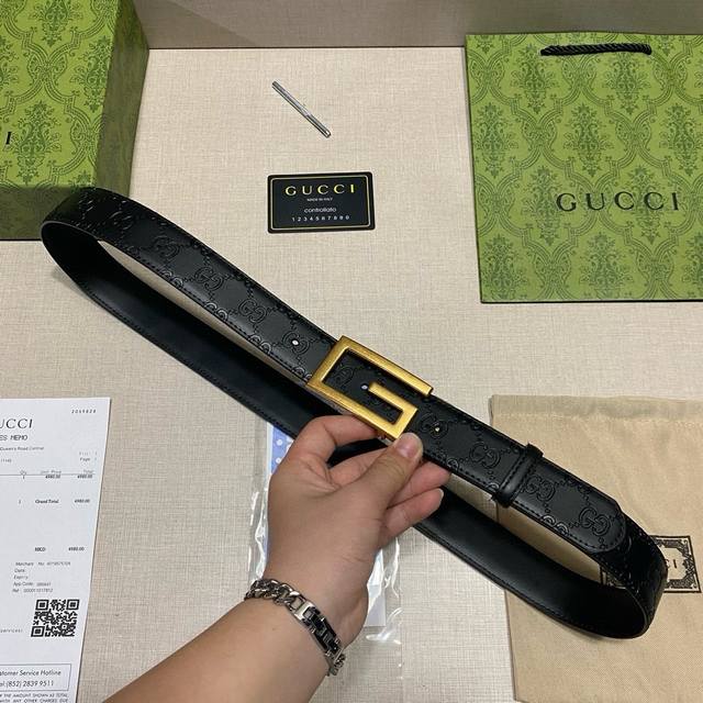 Gucci古奇专柜新款,双面进口原厂牛皮,搭配精品五金旋转扣头,可双面使用,宽度3.8Cm,经典永不过时款,潮流百搭!