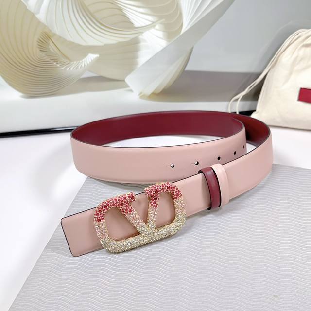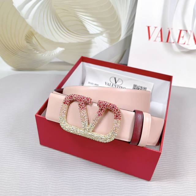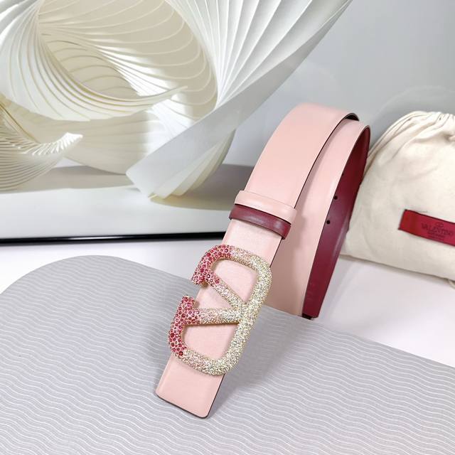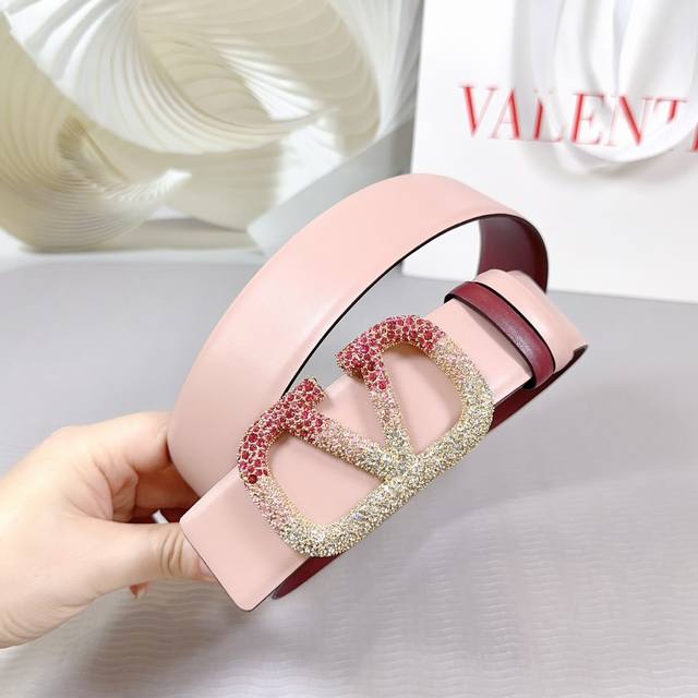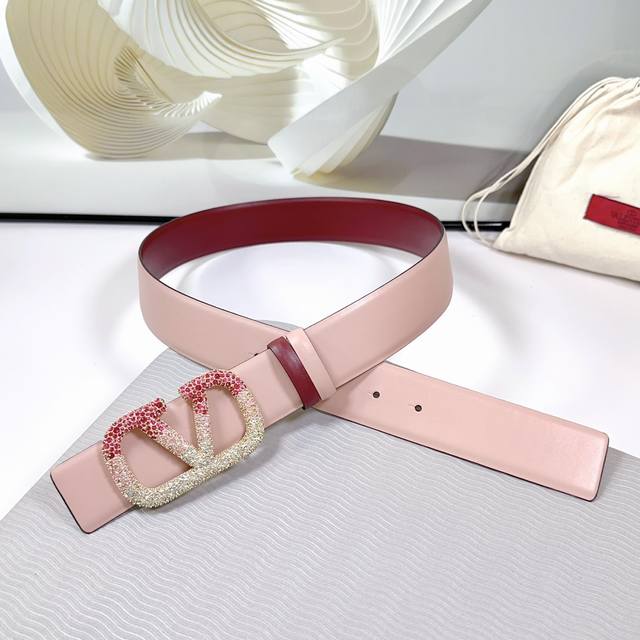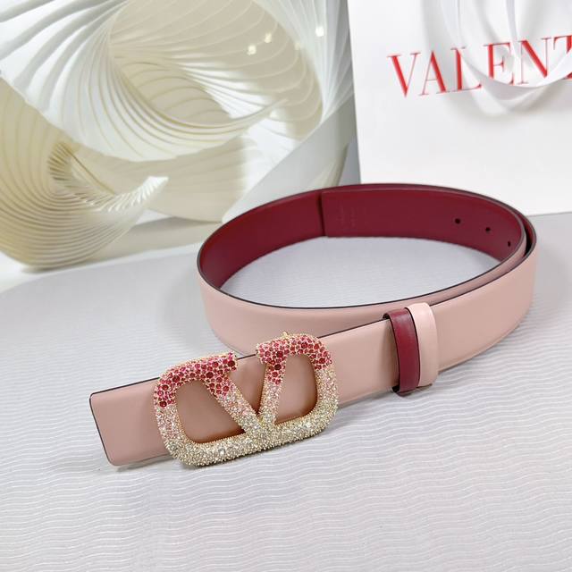 / 4.0Cm华伦天奴新款腰带,双面头层牛皮皮料,长度:75.80.85.90.95.100.105.110欧,铜五金满钻扣原版开模定制庆祝][庆祝
