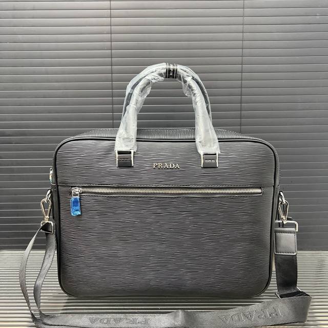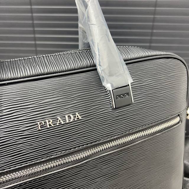 / Prada 普拉达 水波纹压花手提包手袋 电脑包 公文包 超大容量 经典百搭 实物拍摄 原厂原版面料 配送防尘袋 38 X 28 Cm。