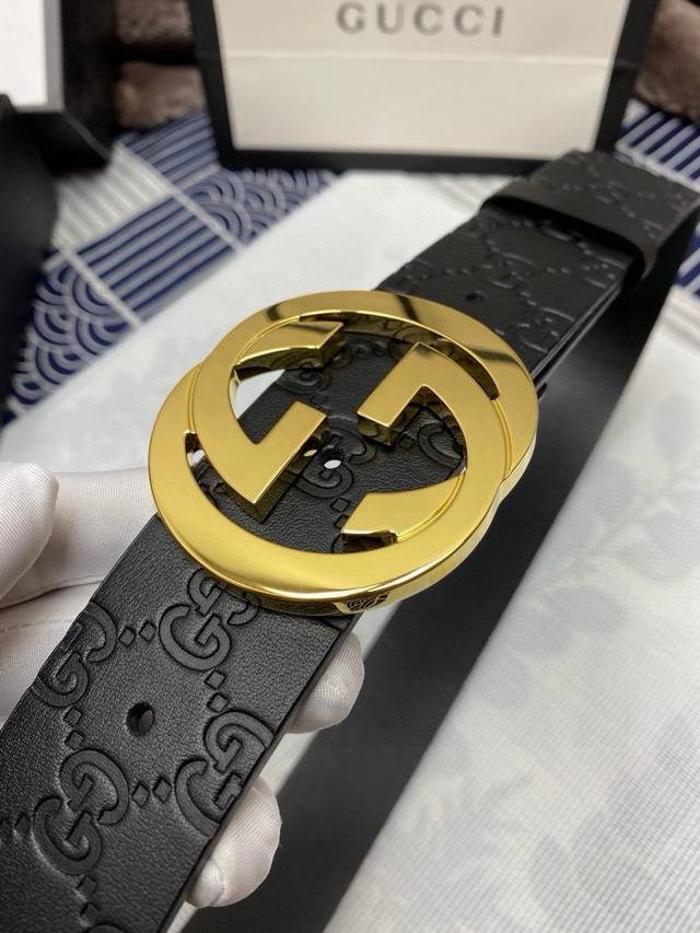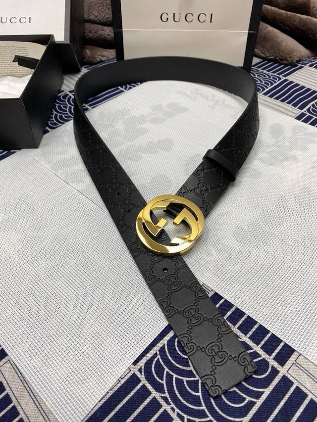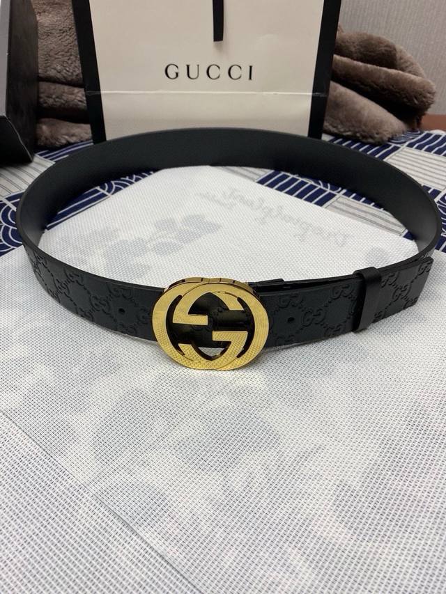 Gucci 古奇官网经典款 正品规格 原单品质 专柜小牛皮压花 头层进口变色磨砂3.8Cm。