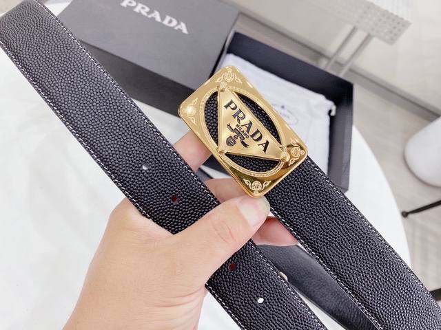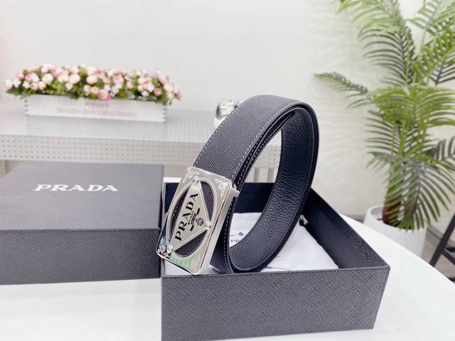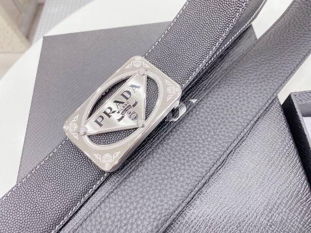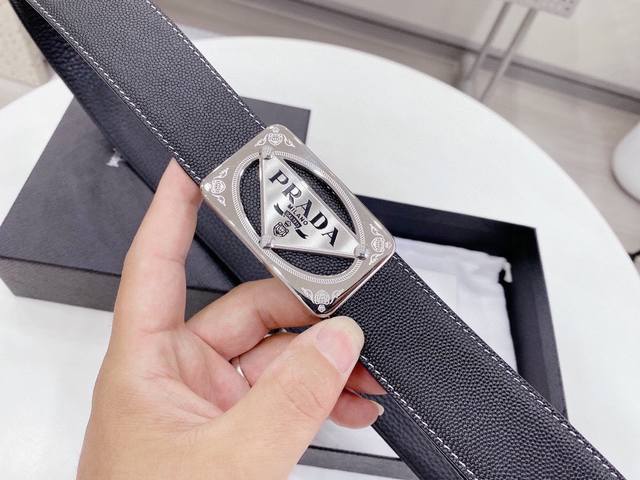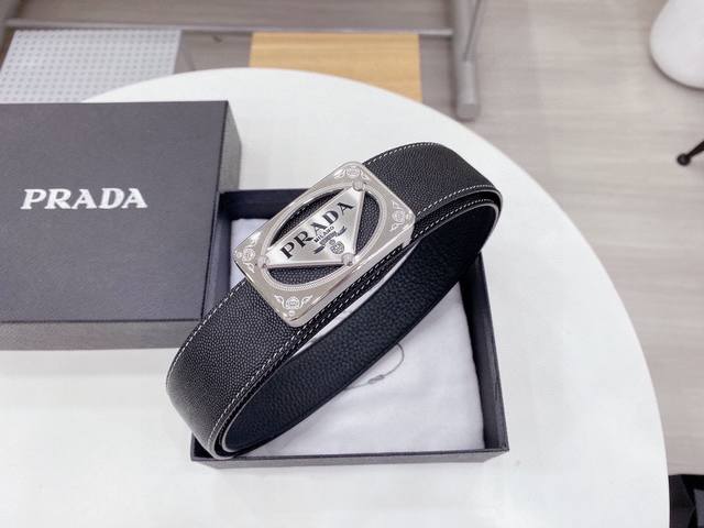/ 普拉达 Prada 世界著名奢侈品牌,专柜进口皮 屋部设计感十足 全新工艺。高端大气。上身效果极佳,搭配 普拉达 Prada 新款花纹扣头,突出品牌形象,高端精