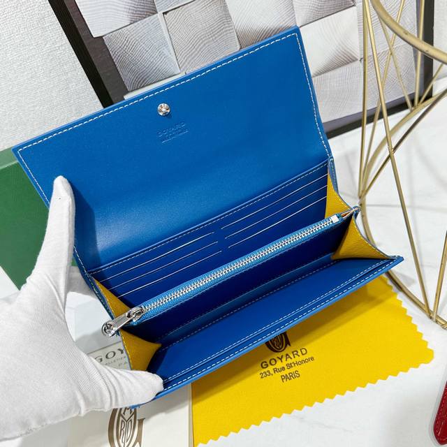 戈雅varenne 两折钱包采用长款设计,利用按扣闭合。12个卡槽,2个隔层,1个长拉链口袋,其功能齐全,可以存放卡、硬币、纸钞和证件。
