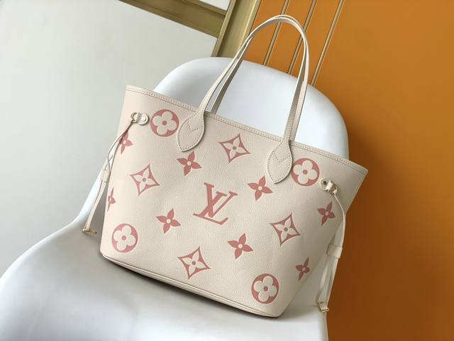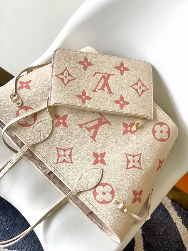 / 顶级原单 M21579 奶油白拼粉色丝印 Neverfull中号购物袋 重新设计的内袋采用了清新的织物内衬和灵感源自路易威登档案馆的复古细节,最值得称道的莫过于
