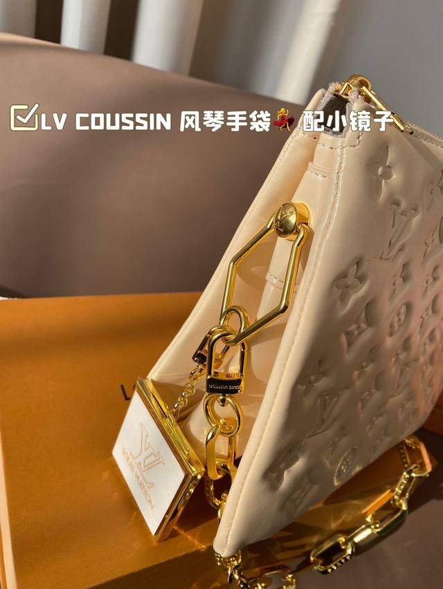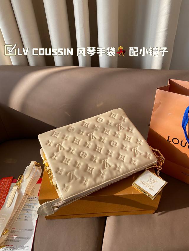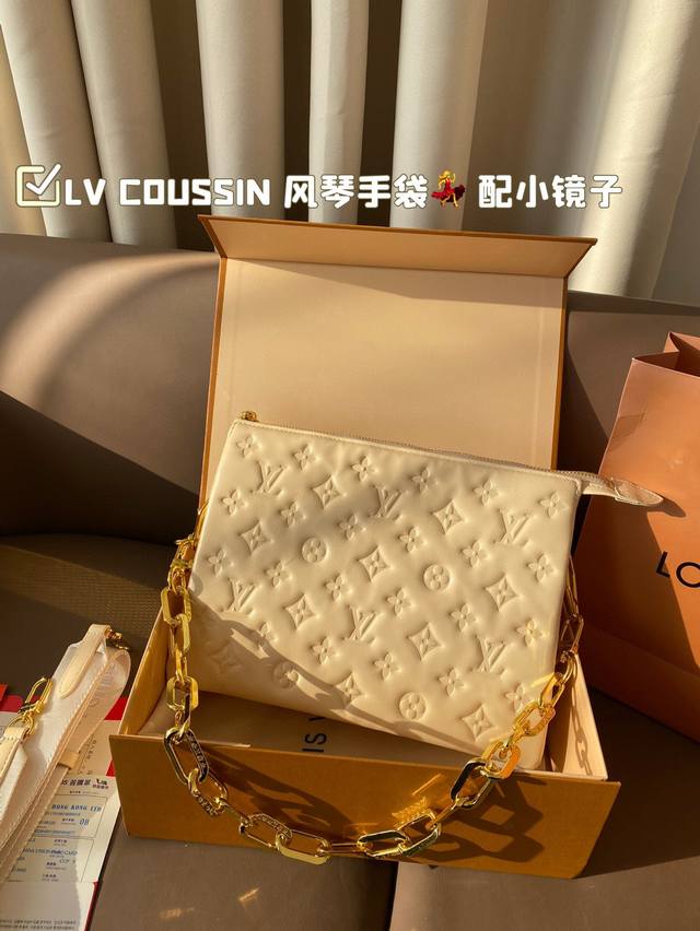 / 配小镜子 Lv 抱枕包coussin 风琴手袋 单肩斜挎包 被拿来用做手包简单大方的款式 真的很炫酷 折叠盒 尺寸27*21