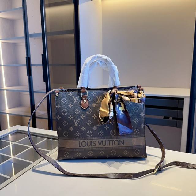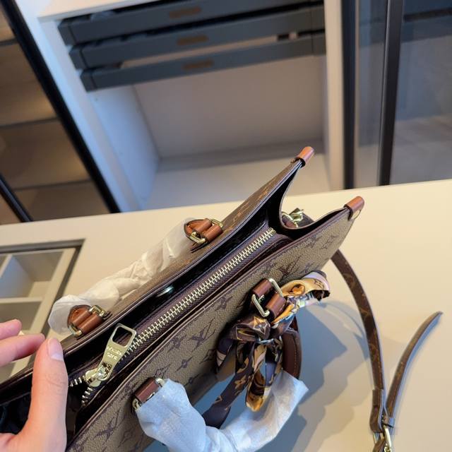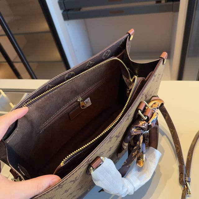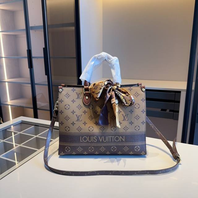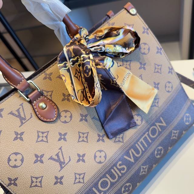 / 新品推荐 赠送原版丝巾lv新款onthego托特包~手提包~配长带可肩背原版老花面料顶级五金 超高回头率!超级实用 Size:31*25*11