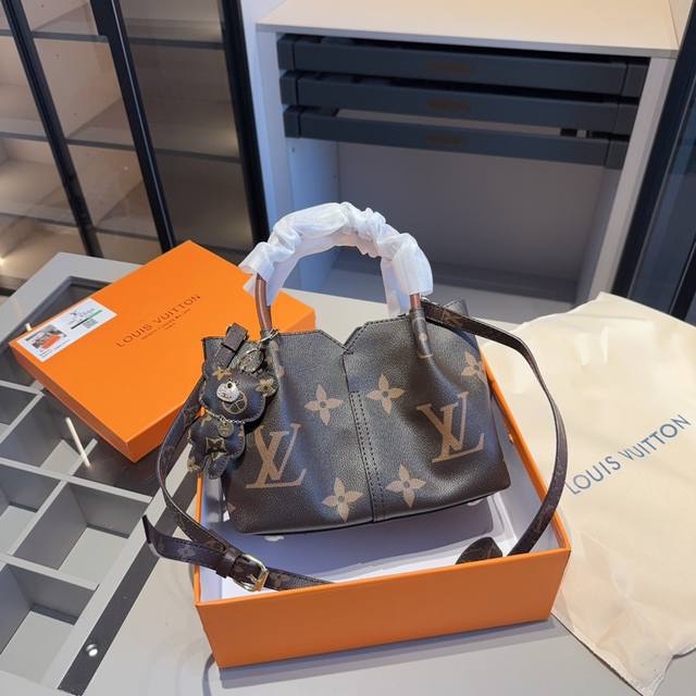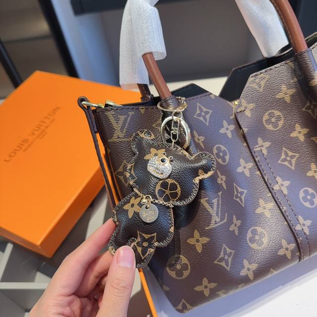 配小熊挂件lv新款手提包~配长带可肩背原版老花面料顶级五金 超高回头率!超级实用原版礼盒包装 Size:24*18*9