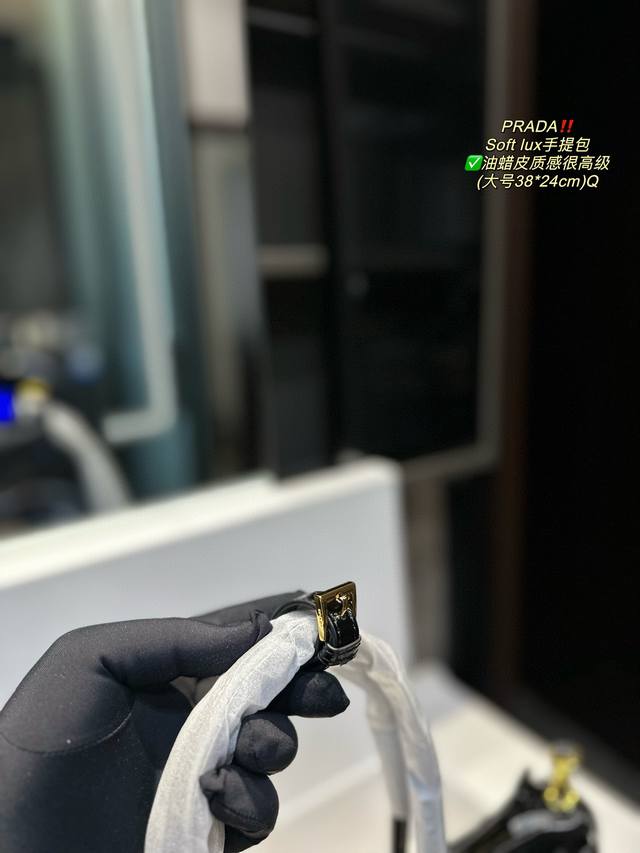 礼盒包装 普拉达prada Soft Lux手提包 油蜡皮 质感很高级 容量超级大也很耐用 日常出街背它回头率百分百 就是这种随性慵懒感尺寸38.24