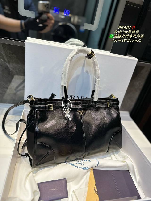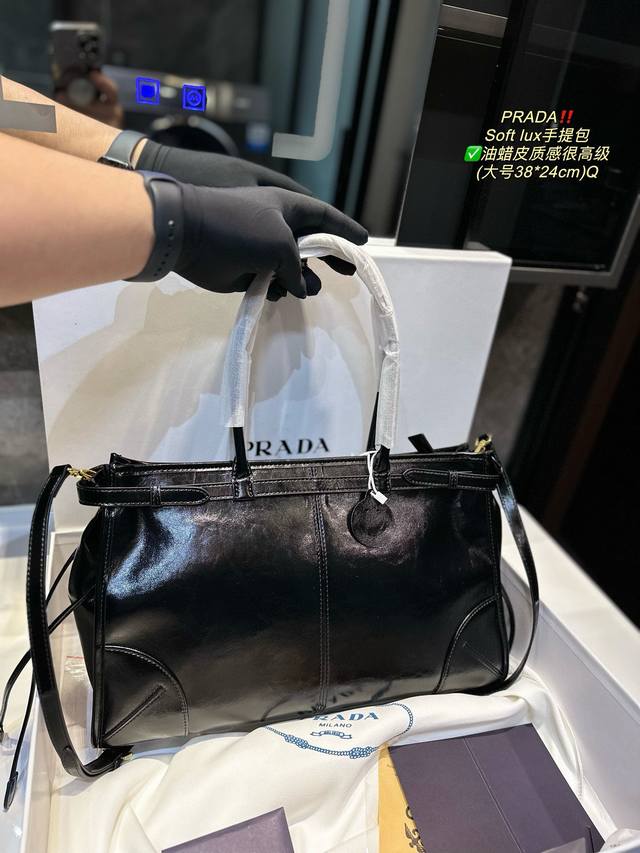 / 礼盒包装 普拉达prada Soft Lux手提包 油蜡皮 质感很高级 容量超级大也很耐用 日常出街背它回头率百分百 就是这种随性慵懒感尺寸38.24