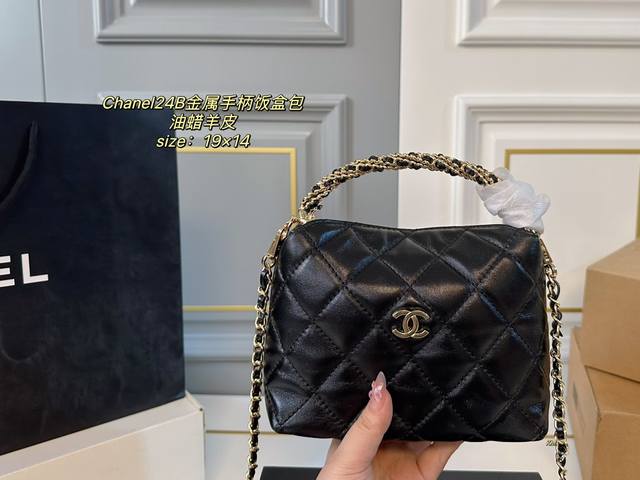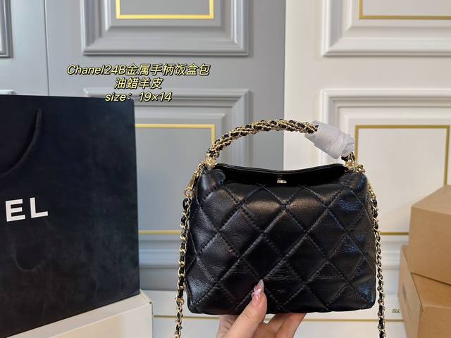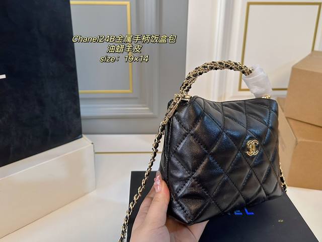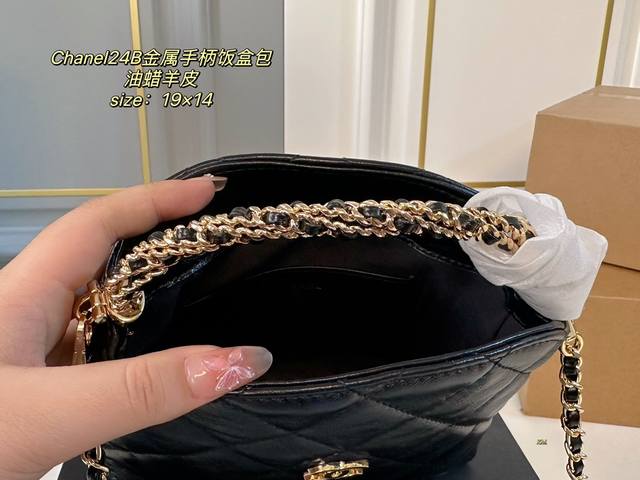 / 油蜡羊皮 折叠盒 Size:19×14 Chanel香奈儿24B Hobo金属手柄饭盒包 皮质质感软糯,复古做旧五金~ 链条可拆卸 又轻又可爱又能装 简单背在身