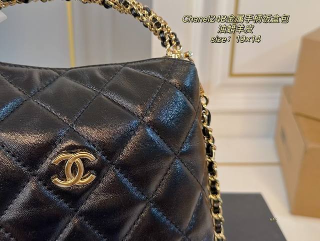 油蜡羊皮 折叠盒 Size:19×14 Chanel香奈儿24B Hobo金属手柄饭盒包 皮质质感软糯,复古做旧五金~ 链条可拆卸 又轻又可爱又能装 简单背在身