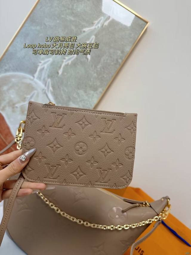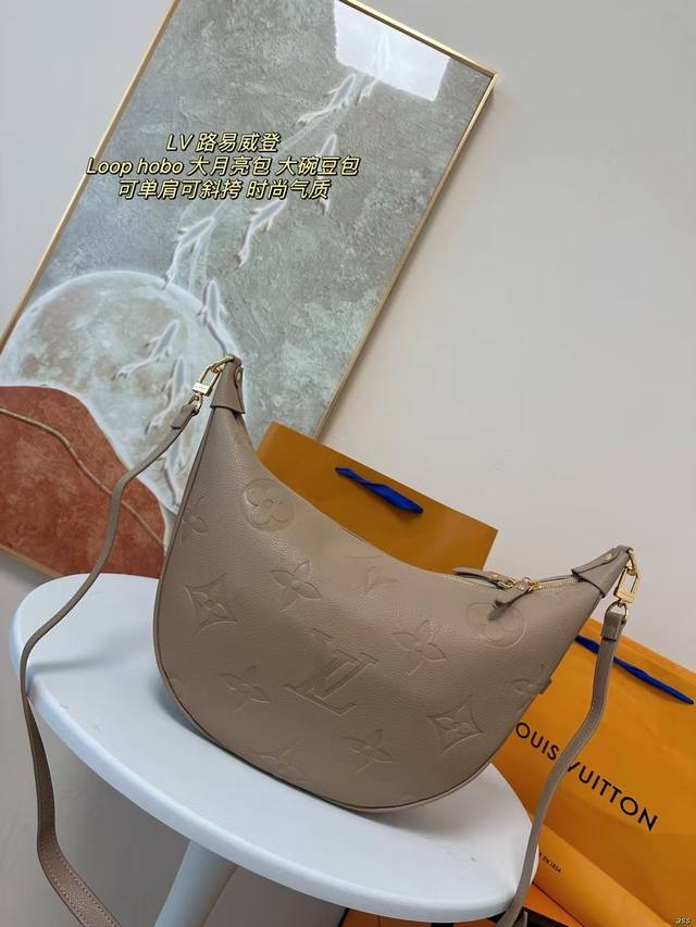 配盒 Lv 路易威登 Loop Hobo 大月亮包 大豌豆包 超喜欢这个大碗豆包包 单肩 斜挎都可 可甜可盐,卫衣西装都可以搭 尺寸:39*24Cm