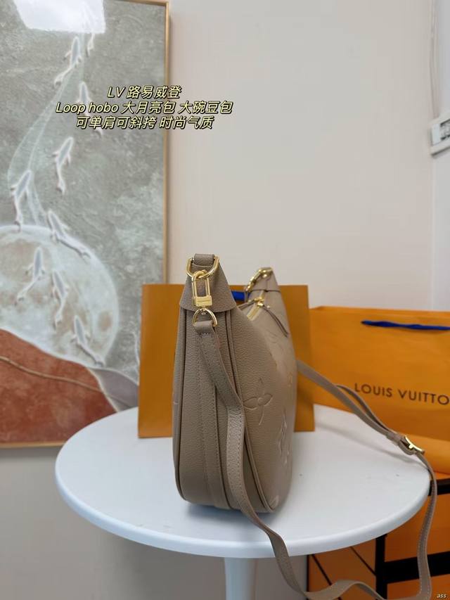 / 配盒 Lv 路易威登 Loop Hobo 大月亮包 大豌豆包 超喜欢这个大碗豆包包 单肩 斜挎都可 可甜可盐,卫衣西装都可以搭 尺寸:39*24Cm