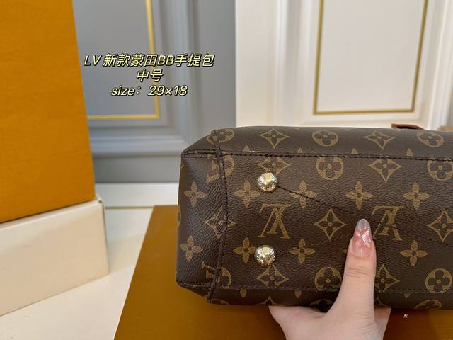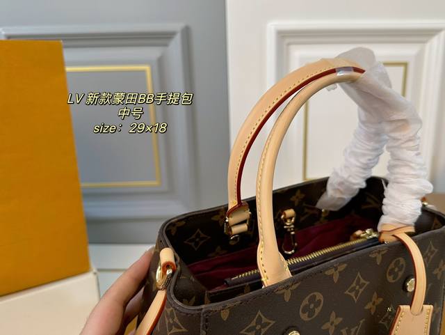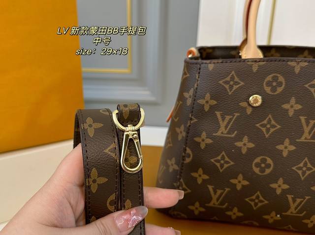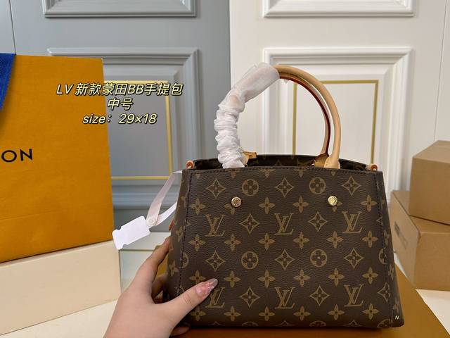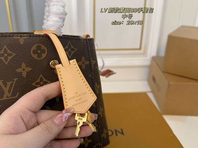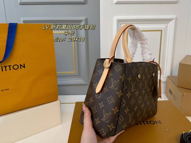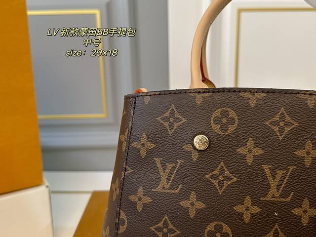 / 中号 折叠盒 Size:29×18中号 Lv路易威登新款蒙田bb手提包 包身挺阔不易塌,实用性很高~ 巨能装,手提、臂挽,也可斜背 老花的配色经典不过时,四季背