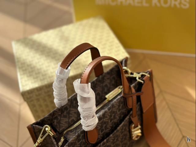 全新的empire链条立体感的链条设计,使老花更具时尚,年轻活力的感觉老花设计,延用mk经典配色,呼应美拉德风格配色,沉稳又低调,更加适合职场通勤 可拎可背,宽肩带舒适度满满。还有拉链的设计,安全感满满。容量就更不用担心了,水杯,遮阳伞在话下。忍不住心动都 尺寸25*17Cm