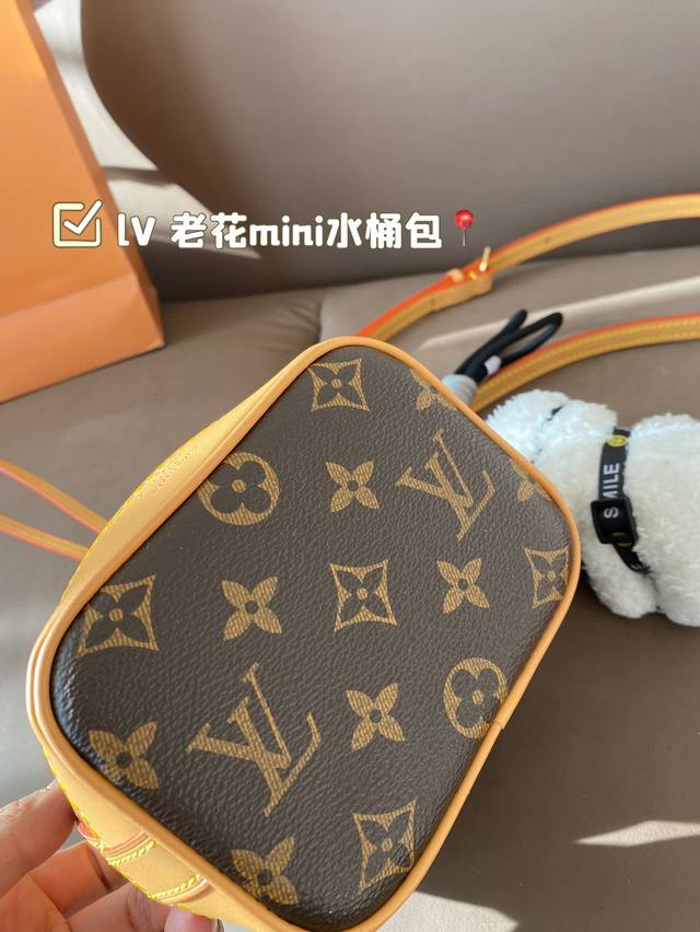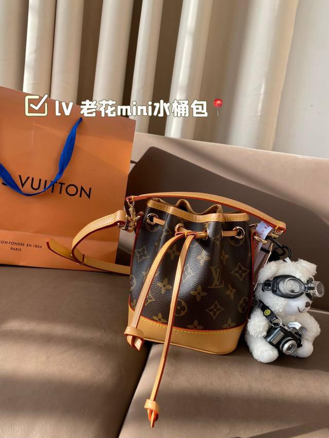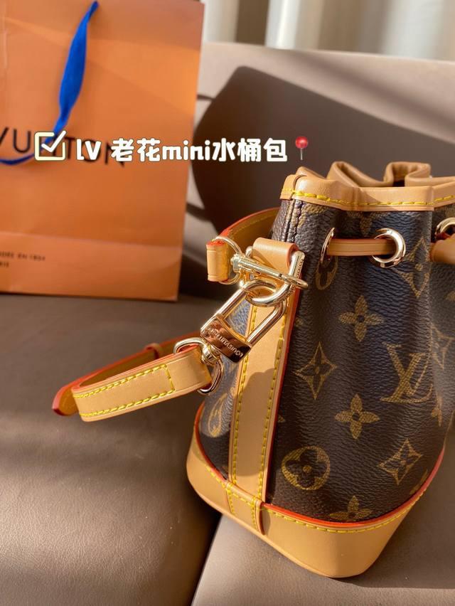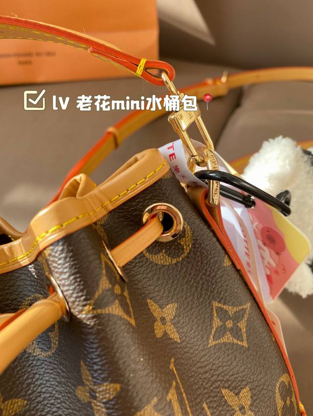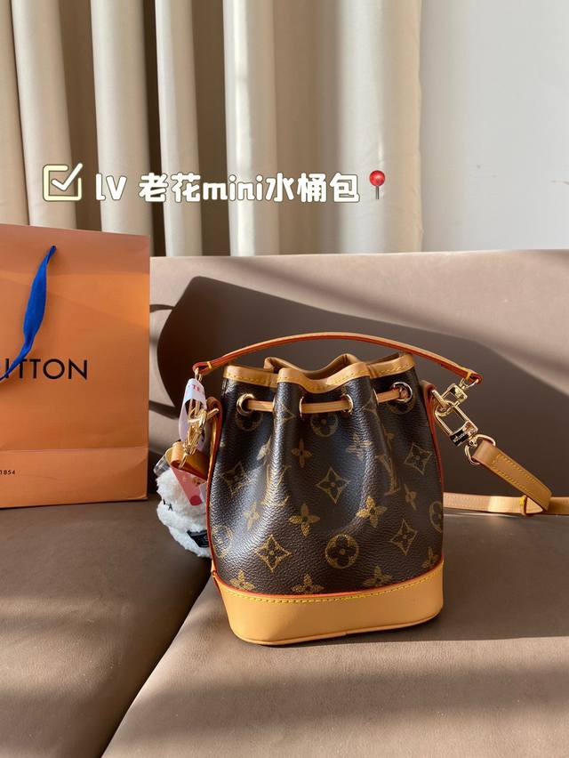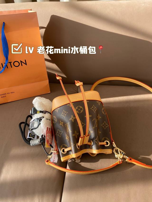 老花logo Mini水桶包 可手拿,肩背两用。配有可拆卸式肩带 平日携带,典雅高贵。 尺寸13*16