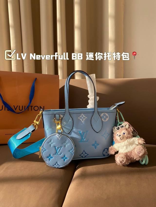 印花系列~Lv专柜爆款neverfull Bb 迷你托特包配圆饼零钱包挂件配原版彩带肩带超级美人手必备单品!专柜同款!原版压花 整包对华裁剪!原版五金!上身效果超棒!超高回头率!原版折叠礼盒包装