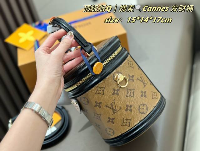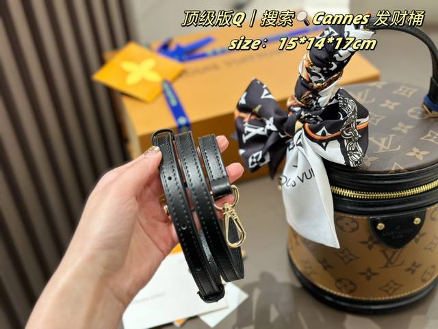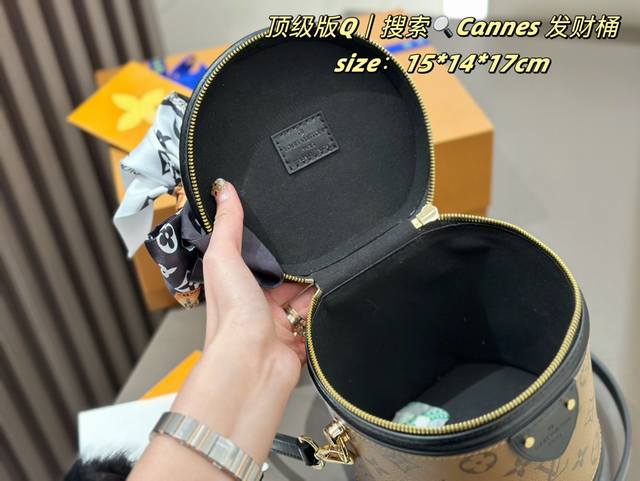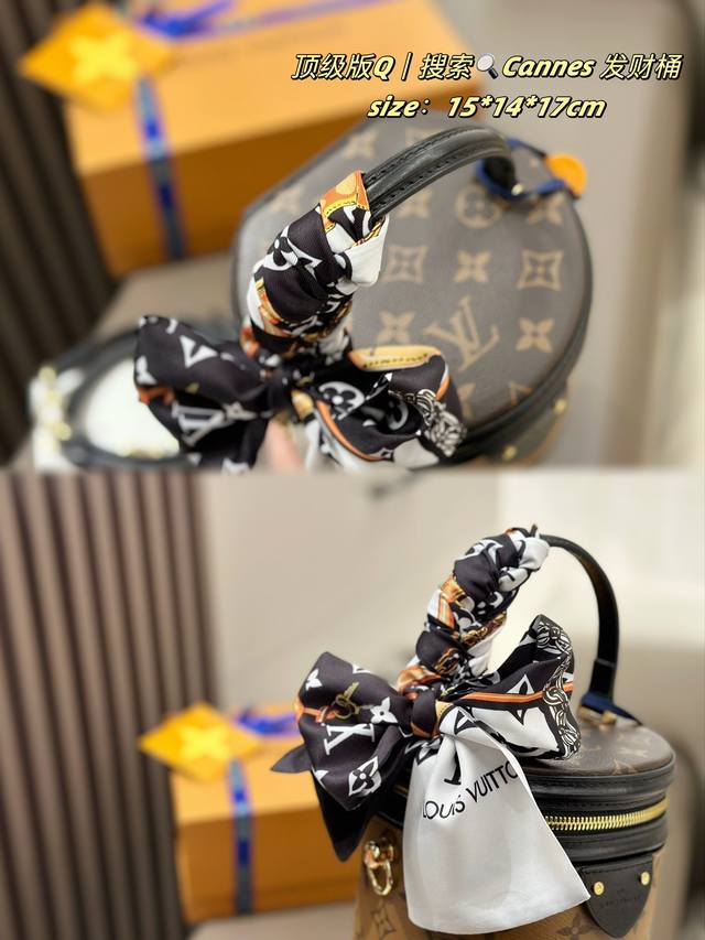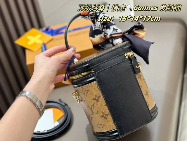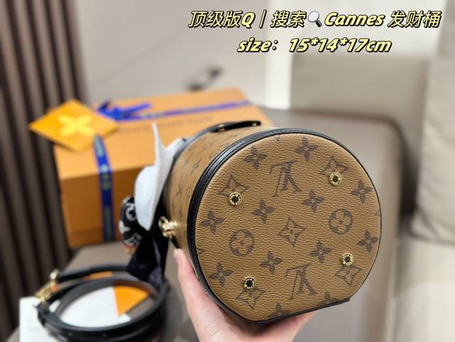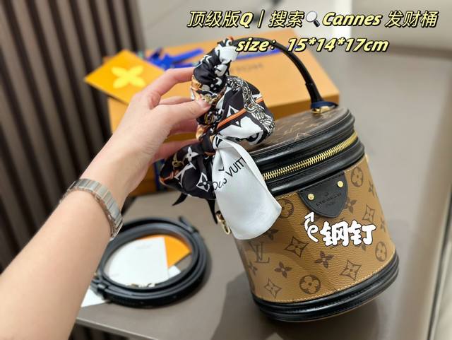 / 钢五金 配折叠礼盒+飞机盒+丝巾 Lv 发财第一步 拥有发财桶 Lv Cannes发财桶 爆款很难定