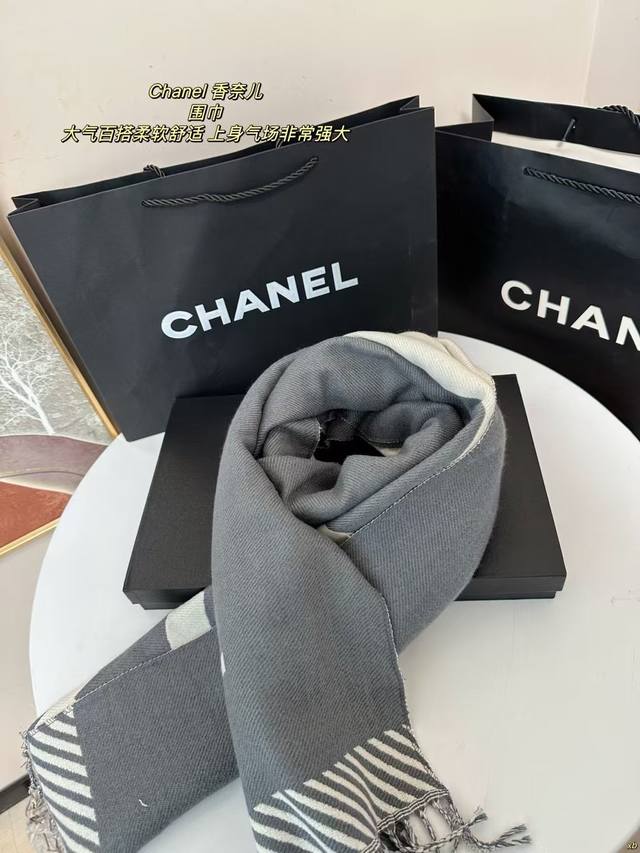 / 配盒+10 香奈儿 Chanel 围巾 真的相当的百搭,上身气质upup!上身效果气场非常强大这款围巾的效果很特别,手感柔软成色有质感,面料厚实保暖,版型更是非
