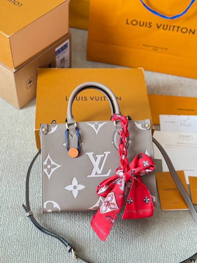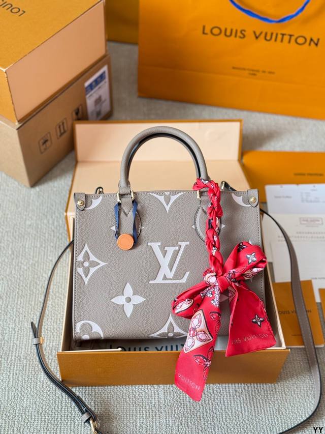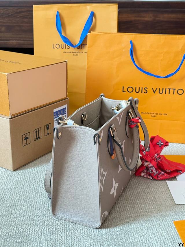 牛皮 配丝巾 折叠礼盒 原单品质 Lv A B面喷绘 Onthego妈咪袋 性价比之王这是一款超赞的包型,灵感来自于恶搞lv的街头品牌,曾经的曾经,Louis