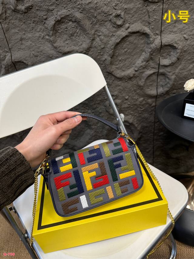 / 折叠盒尺寸20.12Cm 小号 芬迪 Fendi 刺绣法棍包 精致美丽 高级优雅 很好驾驭,不挑衣服,不挑季节一年四季都可,可盐可甜 高个子小姐姐背,气质御姐范