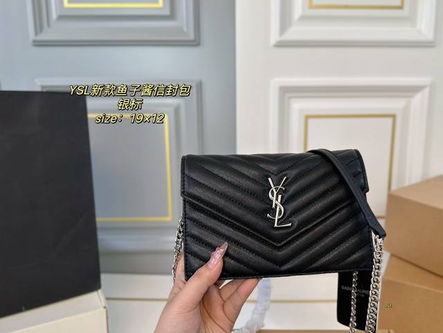 折叠盒飞机盒 Size:19×12 Ysl 圣罗兰鱼子酱信封包 信封口盖v字绗缝元素 简约又高级,轻便实用! 颜值在线,凹造型逛街都很方便!