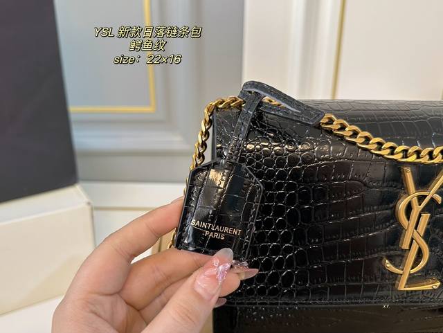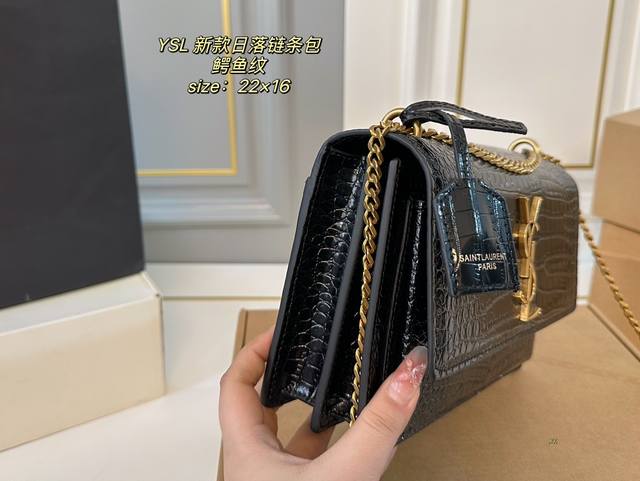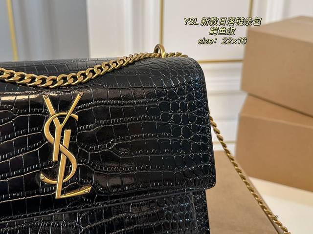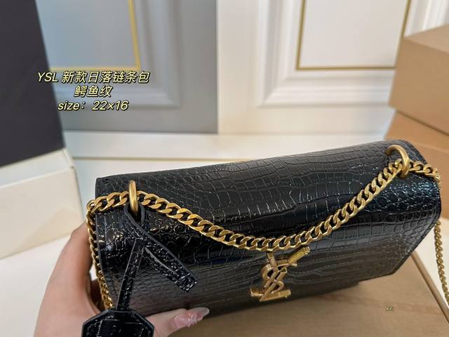 Ysl 圣罗兰sunset鳄鱼纹日落包链条包