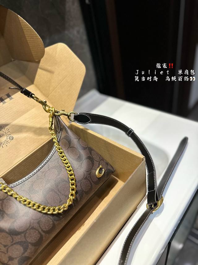 Coach4月新款-Juliet单肩包大容量腋下包,可斜挎可单肩,包身比较软,可以很好的贴合身型,不溜肩,非常受欢迎的juliet单肩包,姐妹们冲~~#Coach新款 #腋下包 25*14