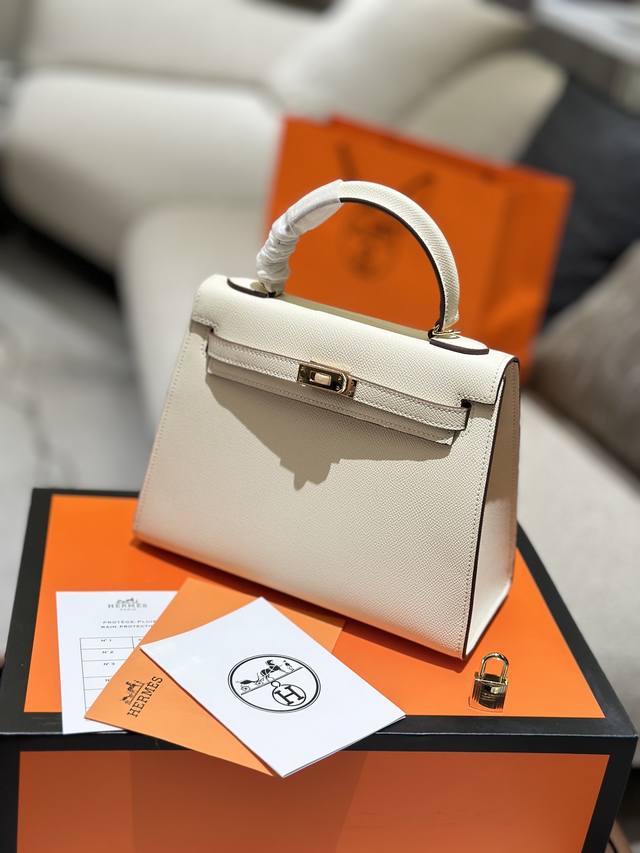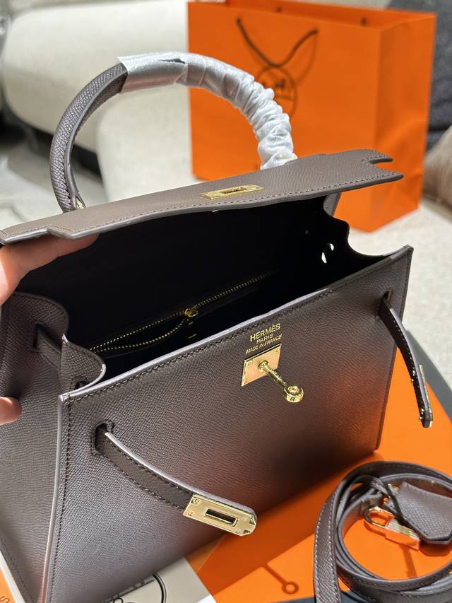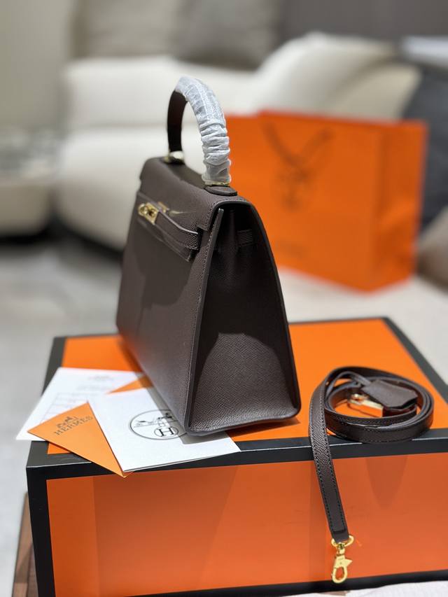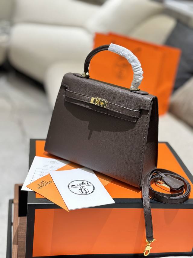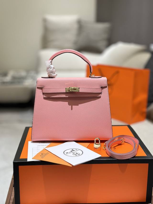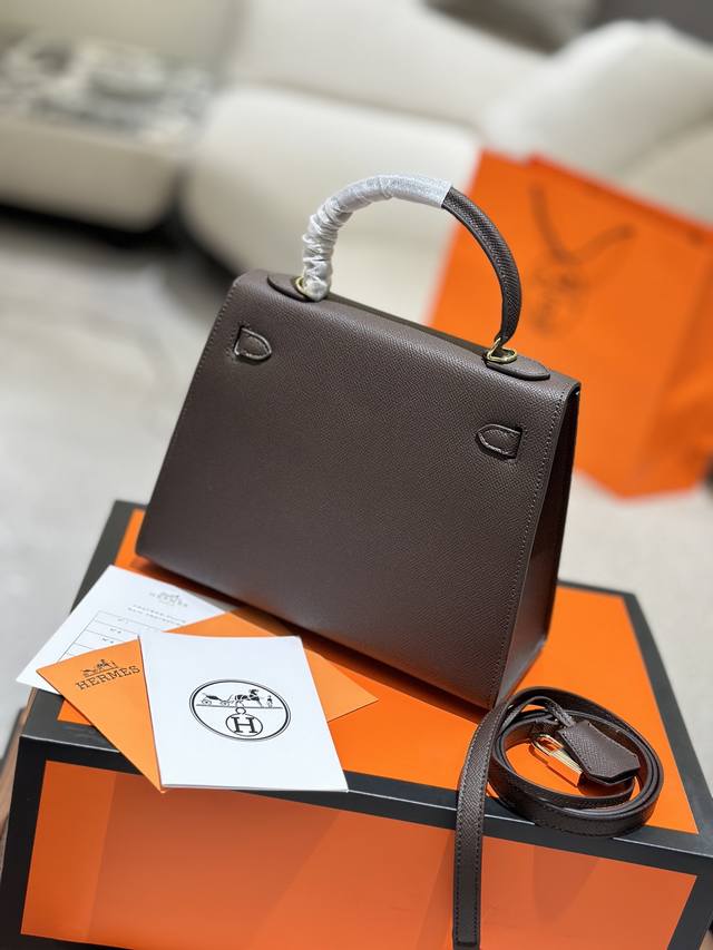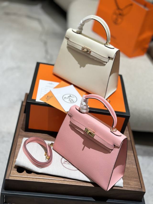 手掌纹牛皮感觉更高级低调,也更实用,并且比亮面稀有。选其一的话首选雾面,不用选的话自然是都要啦6又添一名雾面小成员。而且纹路还很优秀 虽然minikelly真的不实用,但也真的抵挡不住。从纹路到颜色都是极品~25Cm专柜盒子包装