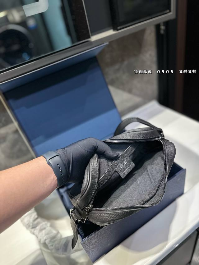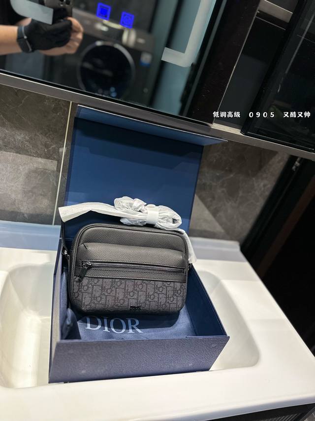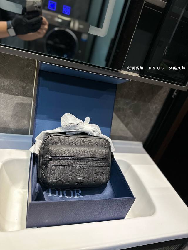/ 礼盒包装 Dior 迪奥 压花 Rider 2.0 可调节肩带拉链开合 皮革拼粒面小牛皮 邮差包单肩斜挎包 男款 黑色 明星单品 采用优质原厂材质 高端品质 2