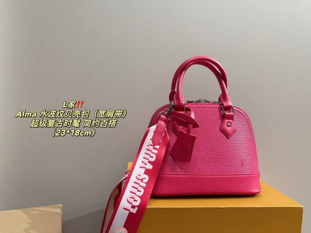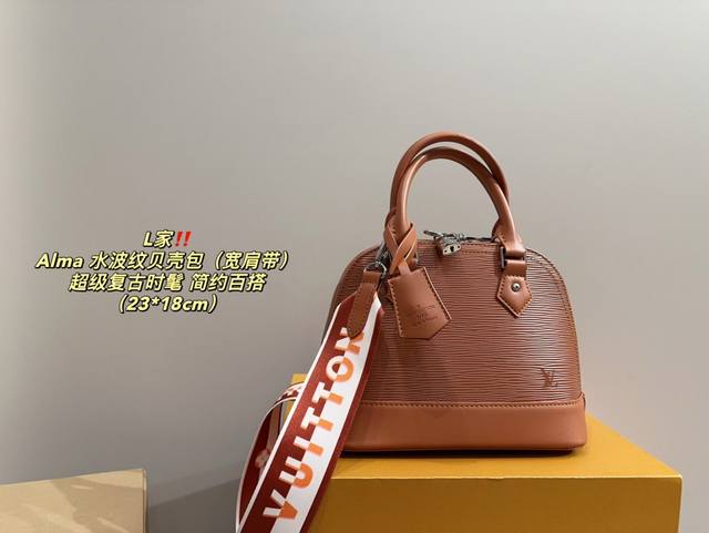 / 配折叠盒尺寸23.18 Lv Alma 水波纹 贝盒包 宽肩带 可手提可斜挎,肩带可调节,对小个子太友好了太喜欢这种迷你包包了 真的好可爱啊啊啊 比老款nano