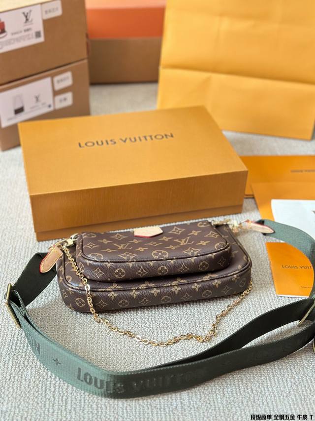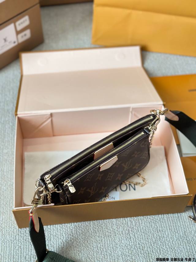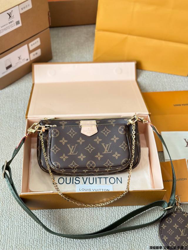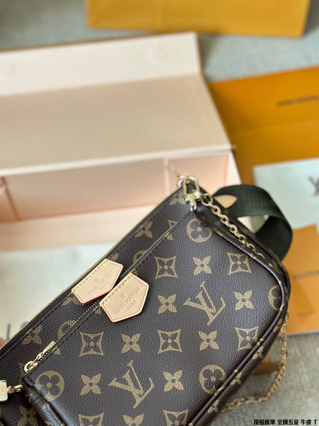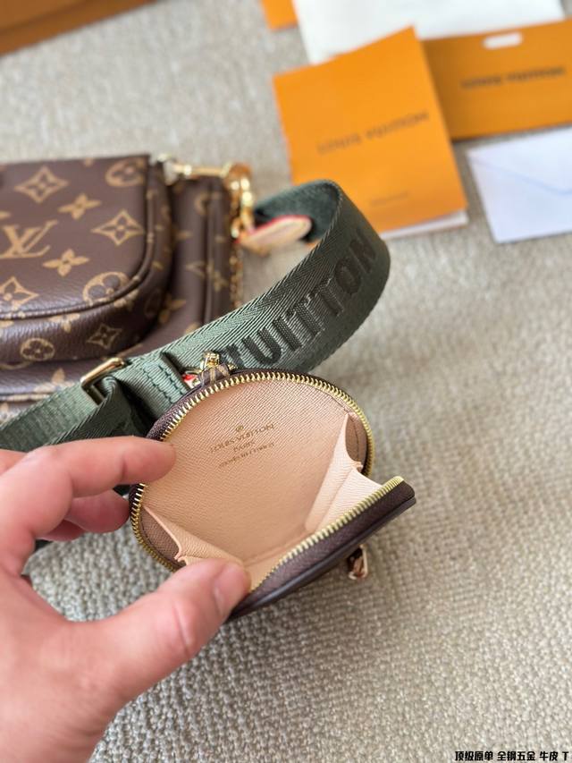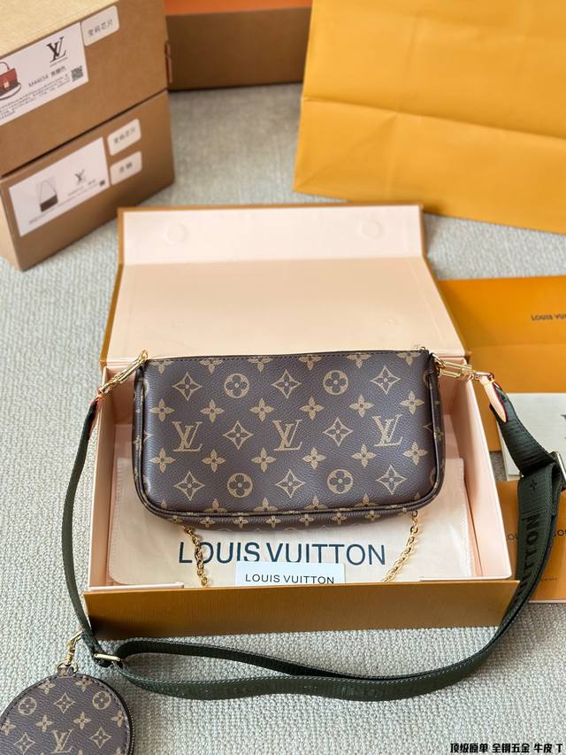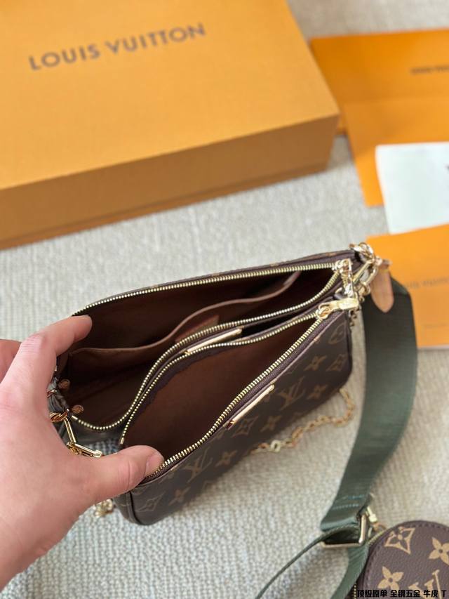 原版高品质 Lv三件套麻将包 柔软的monogram面料+纯钢五金一包四用。可当钥匙包。小容量零钱包、大容量麻将包,编织肩带还可以与其他包包搭配使用。钥匙包可以用来当配饰。秀气的链条小包可单肩可斜挎。超级实用。新颖别致 尺寸:大包23*13Cm 、小包18*11Cm 、圆饼包10Cm 全套礼盒包装