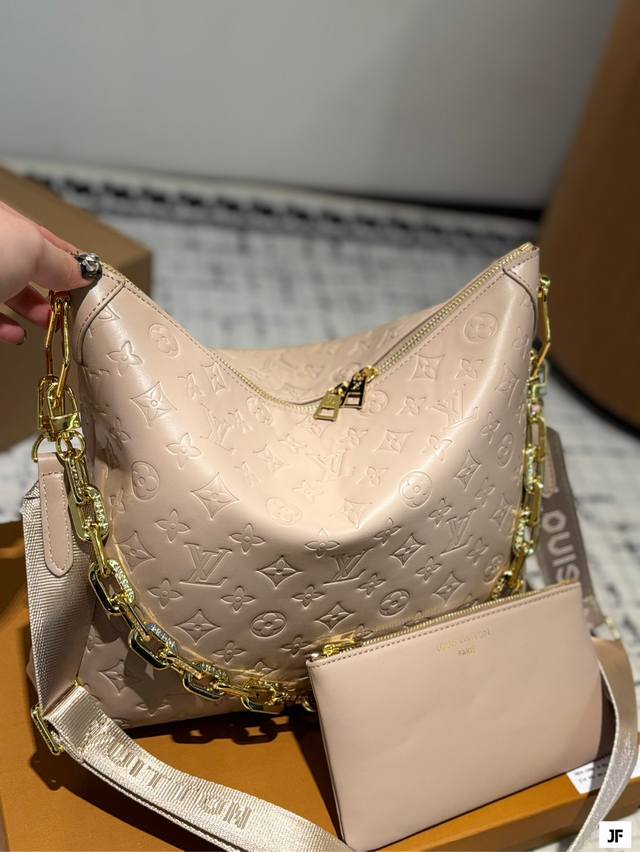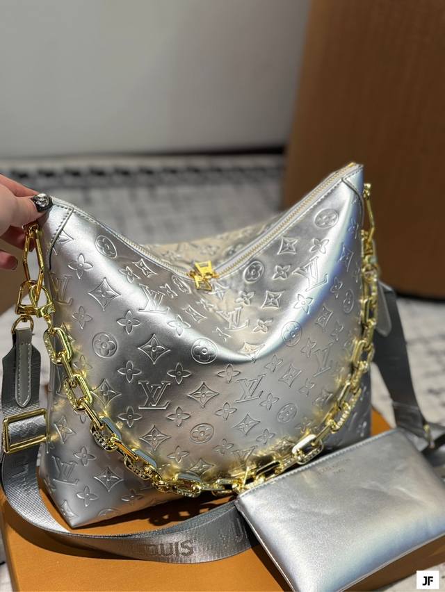 / 礼盒 Lv 走秀新款cousin 时尚博主必备单品,Lv独有的亮金色金属,作为本次设计的肩带粗链条,抓眼球效果非常到位,肩带可拆卸变成手包,妥妥的凹造型!尺寸: