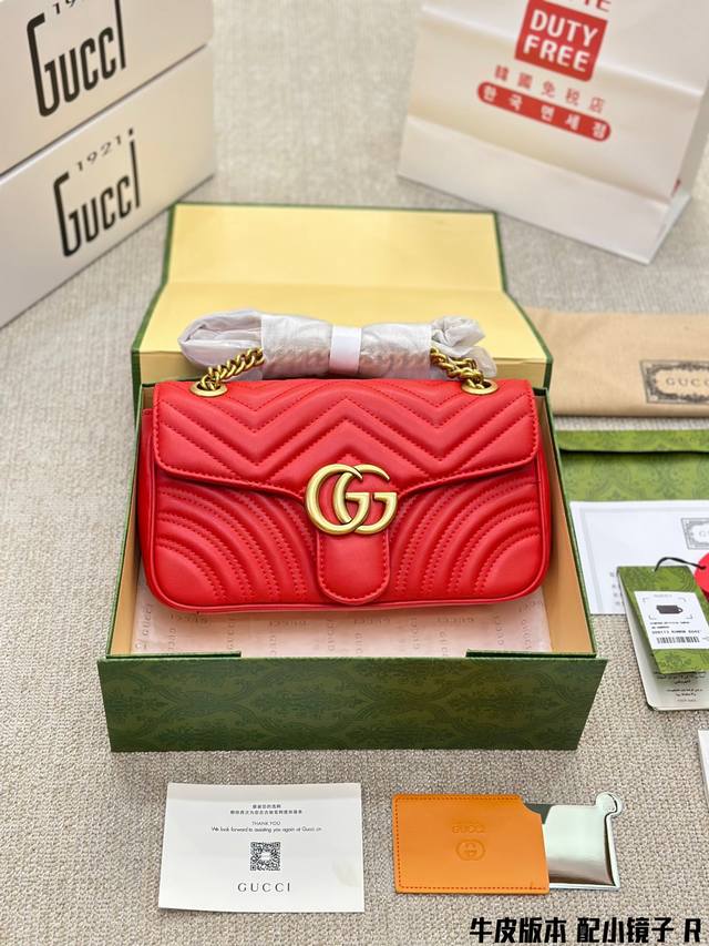 Gucci古奇 经典百搭款marmont 酷奇双g 刺绣爱心单肩包斜挎包女包 美到无法无天的款式 今年简直引领时尚最in元素做了几个月的款,质量一直在升级,配图片礼盒 尺寸 大号27Cm 中号23Cm Mini165.5Cm 全套礼盒包装