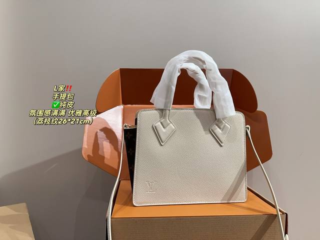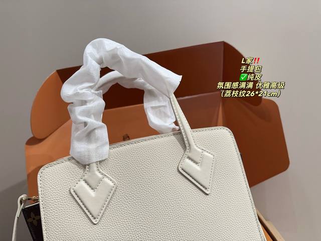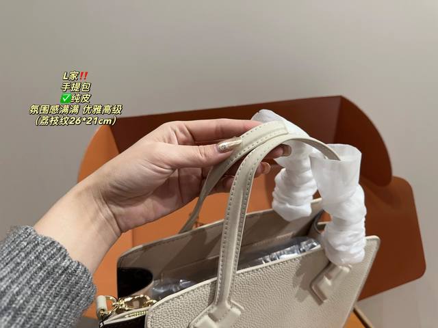 / 纯皮 全套包装尺寸26.21 Lv 手提包 荔枝纹 容量不容小觑 女人味满满 优雅与时尚并存