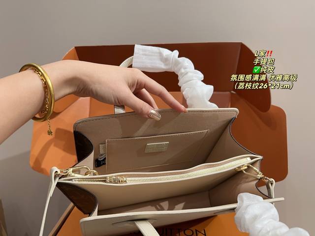 纯皮 全套包装尺寸26.21 Lv 手提包 荔枝纹 容量不容小觑 女人味满满 优雅与时尚并存